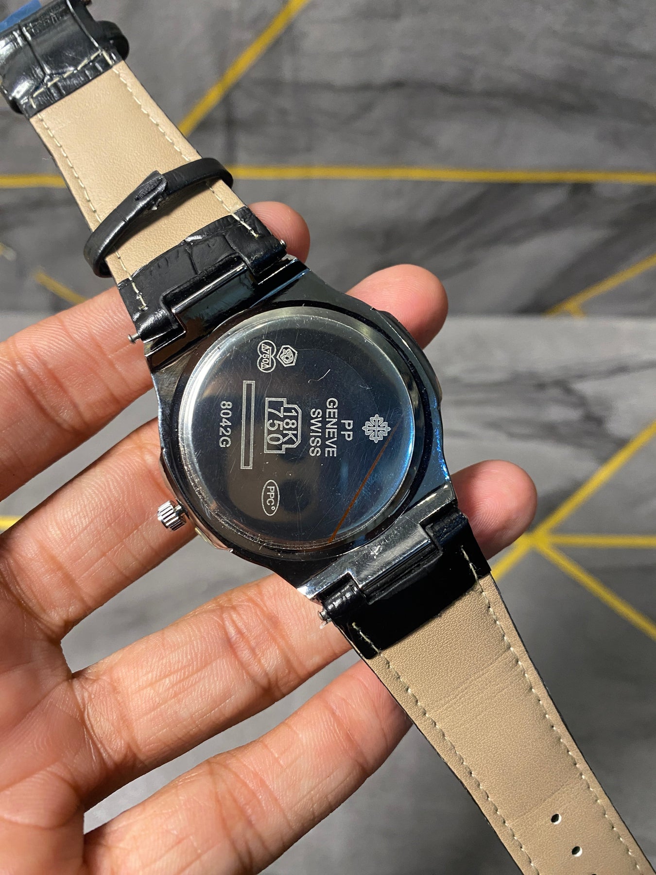 Patek Philippe Strap Watch – Black With White Dial